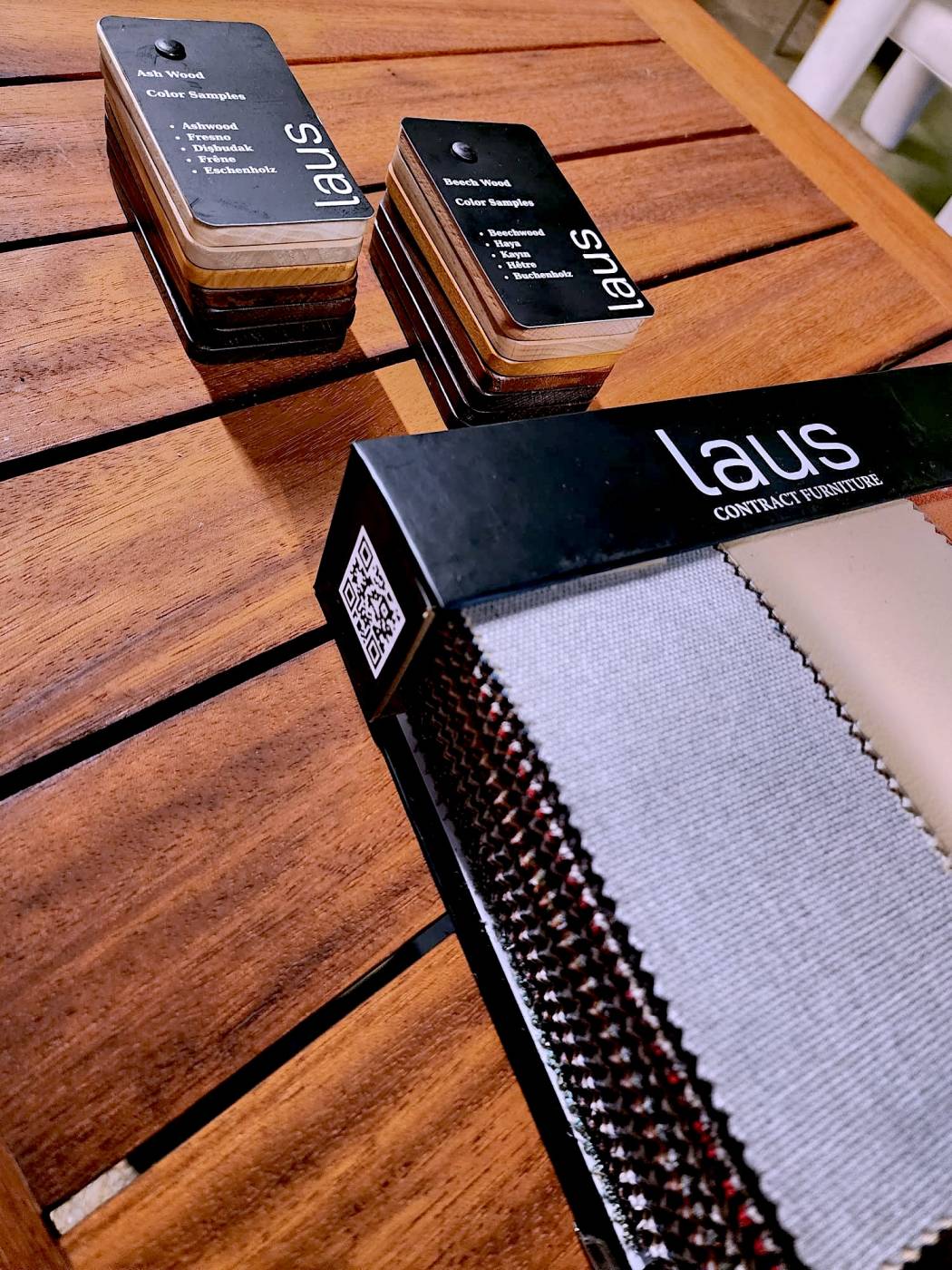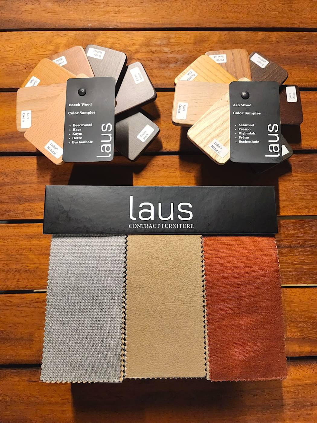 Laus furniture collection samples are very important in order to make our customers to select the right fabric, wood, metal, coating and similar materials. For this reason, we work closely with our suppliers and provide specifications showing both the texture and technical features of the materials.